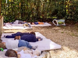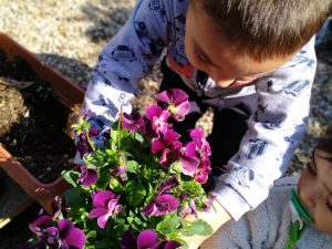 Il nostro asilo ha avviato un progetto di eliminazione della plastica a 360°: i giochi ed i materiali didattici in plastica sono stati sostituiti nel tempo con materiali naturali privilegiando il legno e le loose parts (materiali naturali destrutturati). Durante i pasti utilizziamo piatti di ceramica, bicchieri e brocche di vetro e posate di acciaio. Nella scelta dei fornitori abbiamo privilegiato quelli a KM 0 e frutta, verdura e carne vengono fornite dai negozianti di zona. L’ambiente esterno della scuola è stato ripensato in funzione dell’introduzione dell’approccio Outdoor Education. Il giardino è diventato una vera e propria aula didattica, un ambiente naturale che i bambini imparano a conoscere e rispettare sviluppando il sentimento di affinità che li lega alla natura (biofilia), per un’educazione al rispetto dell’ambiente e alla sua sostenibilità.